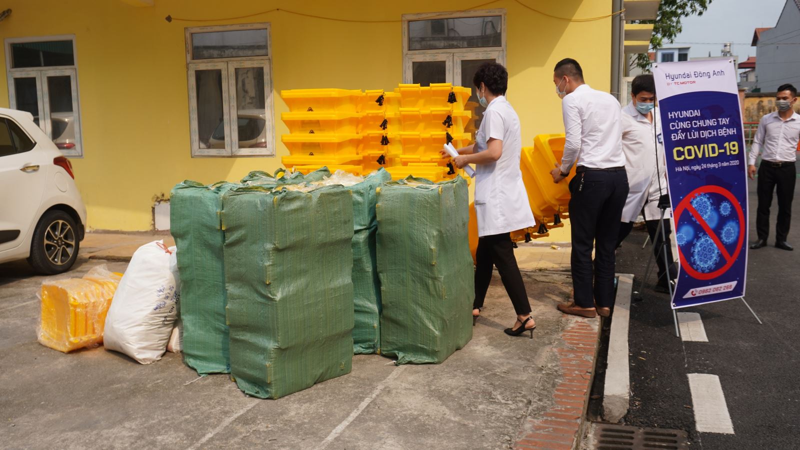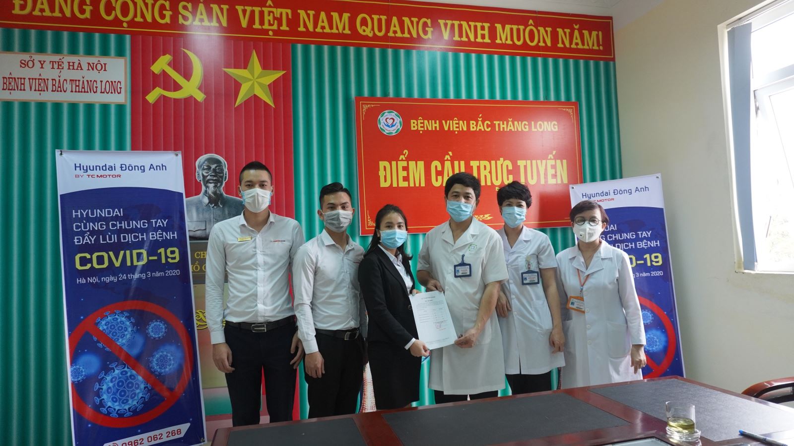 Để hỗ trợ Bệnh viện có thêm các trang thiết bị kịp thời cho việc phòng chống dịch, ngày 24/3/2020 Công ty CP ô tô Thành Công Đông Anh-Hyundai Đông Anh cùng TC MOTOR thực hiện chương trình “HYUNDAI CÙNG CHUNG TAY ĐẨY LÙI DỊCH BỆNH COVID-19”. Với nhu cầu tại khu cách ly của Bệnh viện cần số lượng lớn các loại thùng rác và túi đựng rác chuyên dụng đặc biệt dùng để phân loại rác thải y tế, chúng tôi đã tặng cho Bệnh viện mong muốn với các trang thiết bị này sẽ góp phần nhỏ cùng cộng đồng nói chung và Bệnh viện Bắc Thăng Long nói riêng trong công cuộc phòng chống dịch bệnh Covid-19.