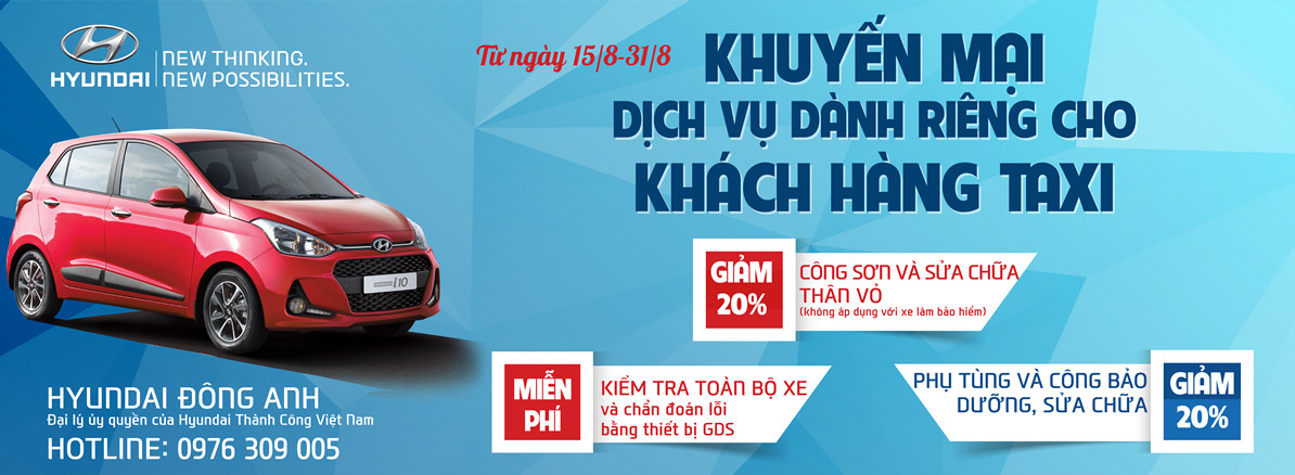 Từ ngày 15/8-31/8/2017, Hyundai Đông Anh thực hiện CTKM dành riêng cho khách hàng Taxi.