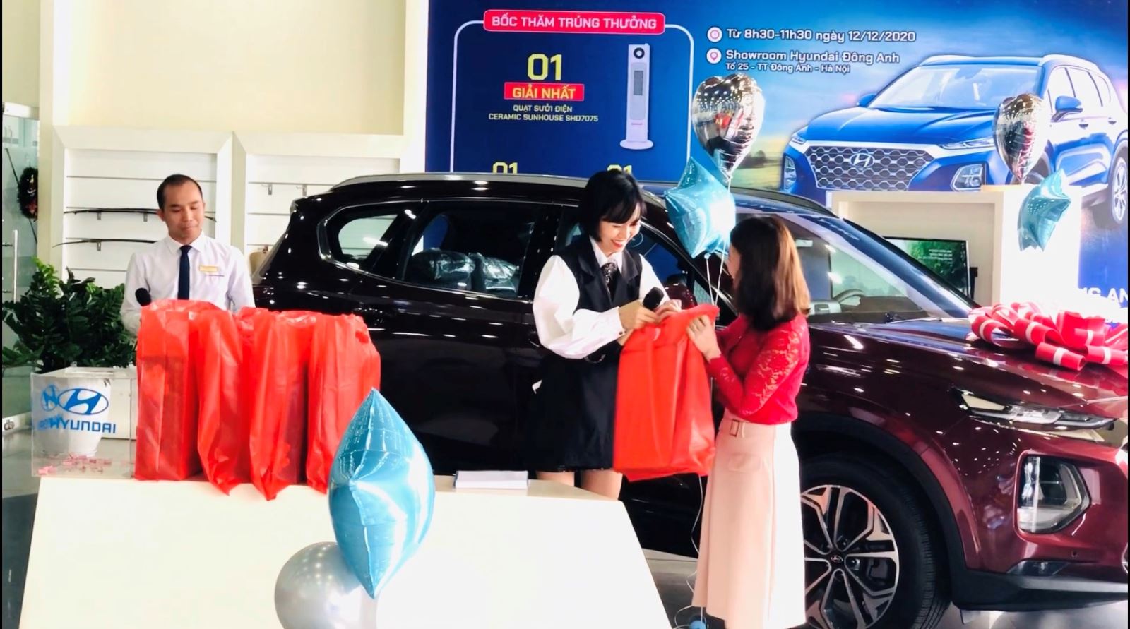 Thay lời cảm ơn đến các Quý khách hàng đã tin tưởng và sử dụng dịch vụ của Hyundai Đông Anh trong thời gian qua, ngày 12/12/2020, Hyundai Đông Anh trân trọng tổ chức chương trình Lễ tri ân khách hàng và lễ bốc thăm trúng thưởng cho các Khách hàng thân thiết.